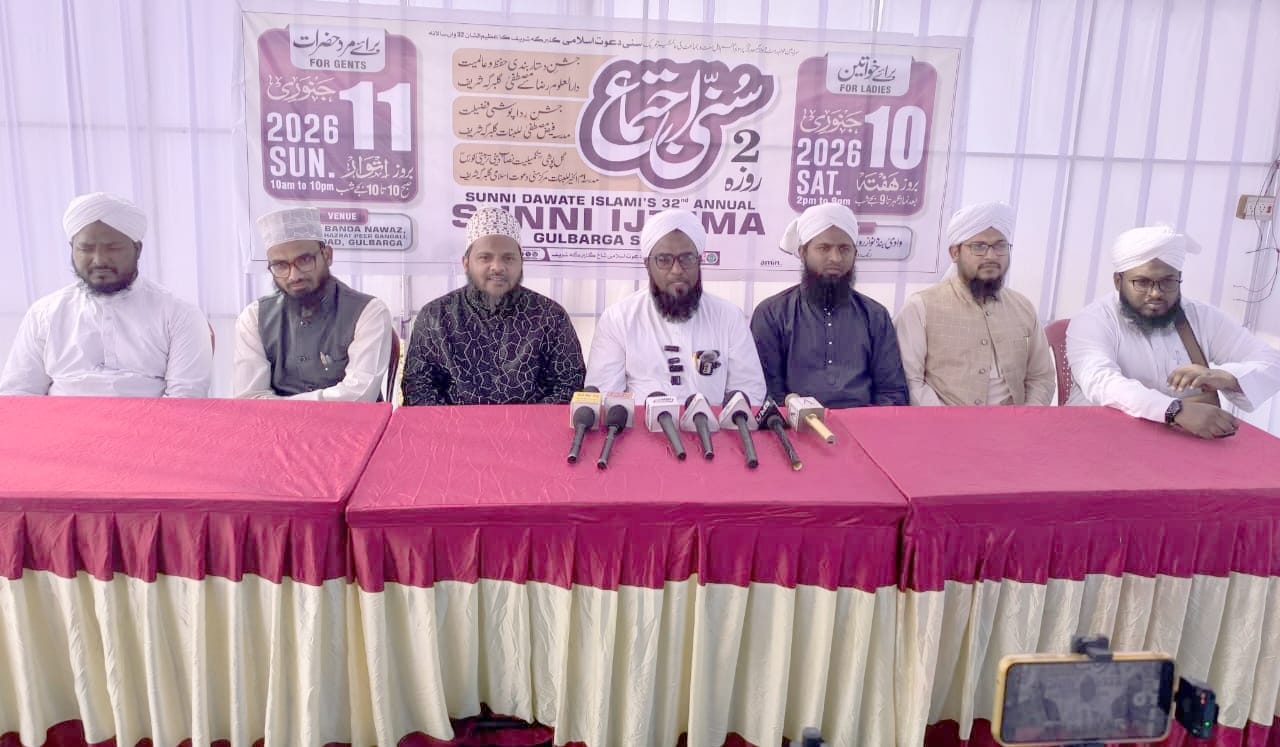 عالمی اسلامی تحریک سنی دعوتِ اسلامی کے زیرِ اہتمام 32واں سالانہ سنی اجتماع 10 اور 11 جنوری 2026 کو گلبرگہ شریف میں منعقد کیا جا رہا ہے۔ یہ دو روزہ عظیم الشان دینی اجتماع وادیِ بندہ نواز، حضرت پیر بنگالی درگاہ کے سامنے، رنگ روڈ پر منعقد ہوگا۔منتظمین کے مطابق، اجتماع کا پہلا دن ہفتہ، 10 جنوری بعد نمازِ ظہر سے رات 9 بجے تک صرف خواتین کے لیے مخصوص ہوگا، جبکہ دوسرا دن اتوار، 11 جنوری صبح 10 بجے سے رات 10 بجے تک مردوں کے لیے رکھا گیا ہے۔اس اجتماع میں ملک بھر سے تشریف لانے والے نامور علما و مشائخ خصوصی خطابات فرمائیں گے۔