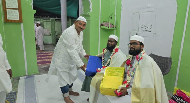 ورنگل شہر میں رمضان المبارک کے مقدس موقع پر ایک خوشگوار اور قابلِ تقلید واقعہ پیش آیا، جہاں مسجد عثمانیہ انتصار گنج کے مصلیان نے تراویح میں قرآن مجید کی تکمیل پر امام و مؤذن کی حوصلہ افزائی کرتے ہوئے قیمتی تحفہ پیش کیا گیا ۔تفصیلات کے مطابق، ورنگل کے علاقے مٹھواڑہ، انتصار گنج چوراستہ میں واقع مسجد عثمانیہ میں تراویح کے دوران قرآن پاک کی تکمیل پر مسجد کے جنرل سکریٹری محمد رفیق صاحب نے ایک منفرد اقدام کرتے ہوئے مسجد کے امام و خطیب مولانا محمد یعقوب صاحب قاسمی کو بطورِ ہدیہ ایک آئی فون اور دیگر قیمتی اشیاء پیش کیا گیا ۔