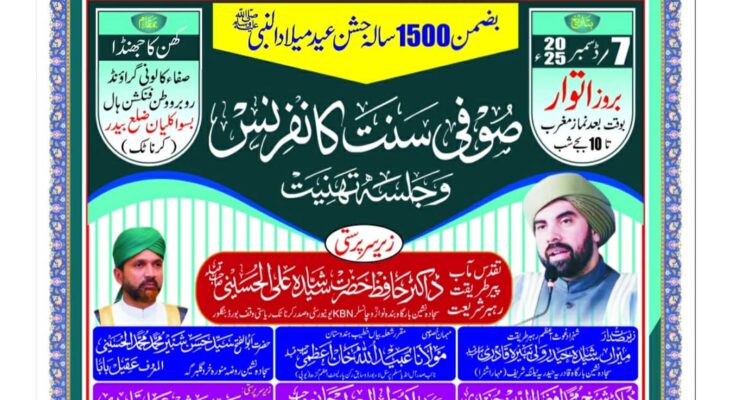 A Sufi Sunnah conference was held in Kalyani Sharb Sharif on the occasion of the 1500th anniversary of the birth of the Prophet (peace be upon him)