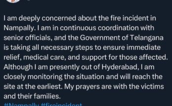 Telangana / Telangana Stateنامپلی آتش زدگی واقعہ: وزیر محمد اظہرالدین کا اظہارِ تشویش، فوری امداد کی یقین دہانی۔ 2026-01-24 - by apnawarangal نامپلی آتش زدگی واقعہ: وزیر محمد اظہرالدین کا اظہارِ تشویش، فوری امداد کی یقین دہانی۔ Read More