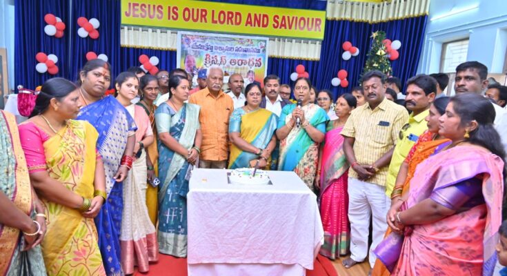 کرسمس کے مقدس تہوار کے موقع پر ورنگل (مشرق) اسمبلی حلقہ کے مختلف علاقوں — دیشائی پیٹ، منڈی بازار، لیبر کالونی، کرسچن کالونی، قلعہ ورنگل اور ناگمایا گوڑی میں قائم گرجا گھروں میں جمعرات کے روز ریاستی وزیر محترمہ کونڈا سریکھا نے خصوصی عبادات میں شرکت کی اور کیک کاٹ کر مسیحی برادری کے ساتھ خوشیوں میں شامل ہوئیں۔