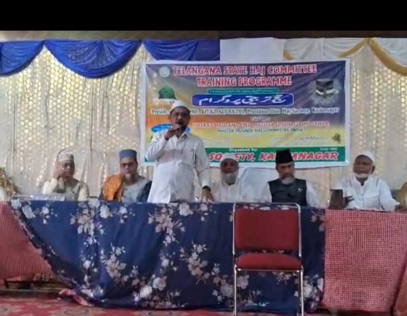 ضلع حج سوسائٹی کریم نگر کے زیر اہتمام پہلا حج تربیتی پروگرام الحاج محمد ریاض علی رضوی صدر ضلع حج سوسائٹی کریم نگر کی صدارت شالیمار فنکشن پیالس میں منعقد ہوا۔ جس میں مہمان خصوصی کی حیثیت سے الحاج مولانا سید مظہر قاسمی صاحب نے خطاب کرتے ہوئے مناسک حج پر تفصیلی روشنی ڈالتے ہوئے عازمین حج پر زور دیا کہ وہ مناسک حج کی ادائیگی پر خصوصی توجہ دیں۔