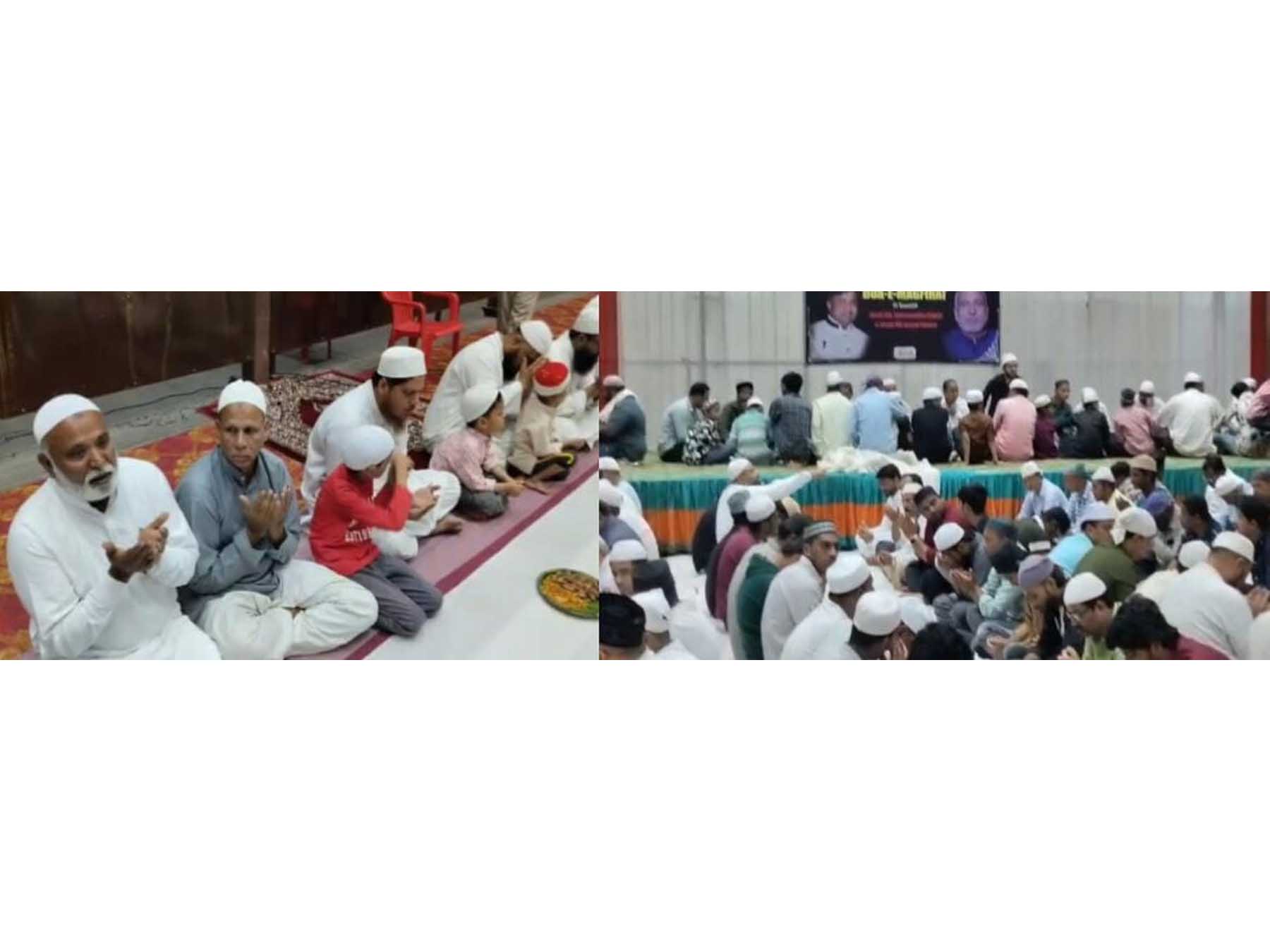 افطار سے قبل مومولانا محمد عبدالوحیدقاسمی امام و خطیب مسجد مدرسہ محمود گاواں ؒ بیدرنے پُر اثر دعاء فرماتے ہوئے مر حوم جناب محمد نظام الدین مو ظف محکمہ آبکاری،مرحوم جناب محمد سلیم الدین سابقہ صدر بیدر اربن کریڈٹ کو آپریٹیو سو سائیٹی اورمحمد جنید احمد مرحوم کے علاوہ تمام مر حومین کی مغفرت کیلئے دعاء کی گئی۔ احاطہ فنکشن ہال میں با جماعت نماز مغرب کی ادائیگی کے بعد پُر تکلف ضیافت کا اہتمام کیا گیا،