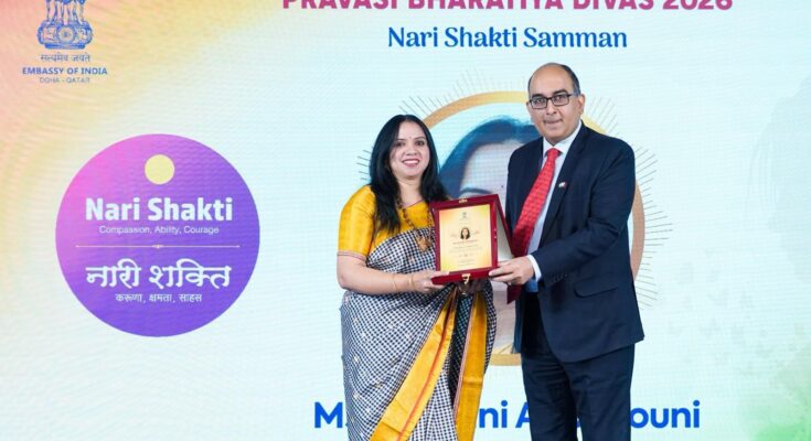 ساتھ ہی بھارت اور قطر کے درمیان دوستانہ اورباہمی تعلقات کو مضبوط بنانے میں نندنی کی خدمات کو خراج تحسین پیش کیاگیا۔تلنگانہ جاگروتی کی صدر کلواکنٹلہ کویتا نے ایوارڈ کے حصول پر نندنی کو دل کی عمیق گہرائیوں سے مبارکباد پیش کی۔تقریب میں بھارتی سفارت خانہ کے اعلیٰ عہدیداروں کے علاوہ مختلف ریاستوں کی تنظیموں کے قائدین اور معزز شخصیات نے شرکت کی۔ےہ تقریب خواتین کو بااختیاربنانے کی علامت کے طور پر دیکھی گئی۔جبکہ پرواسی بھارتےہ دیوس 2026کی تقریبات نے دنیا بھر میں مقیم بھارتیوں کے اتحاد اور یکجہتی کو اجاگر کیا۔