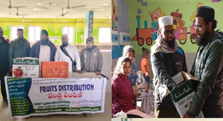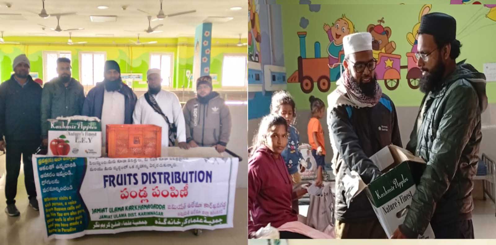 Jamiat Ulama Karimnagar distributes fruits among patients, demonstrating service to the community
