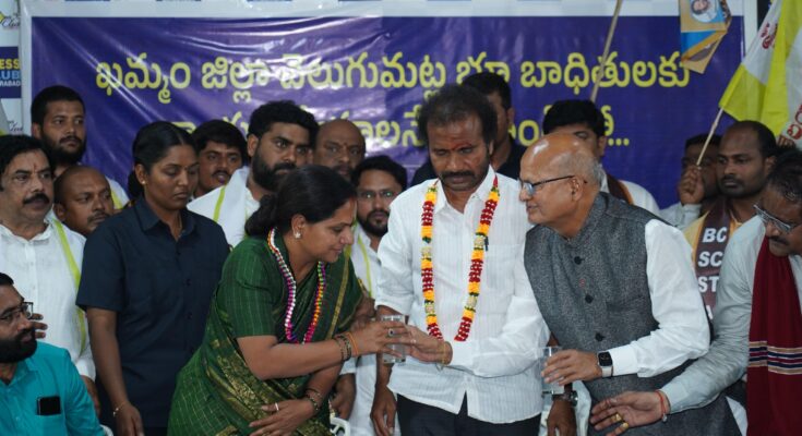 کھمم ضلع کے ویلوگمٹلا متاثرین کو اسی مقام پر امکنہ پلاٹس اور نئے مکانات فراہم کرنے کے مطالبہ پر کے کویتا و دیگر کی جاری بھوک ہڑتال چہارشنبہ کی شام ختم کردی گئی۔ تلنگانہ جاگروتی کی صدر کلواکنٹلہ کویتا اور دھرم سماج پارٹی کے صدر وشاردھن مہاراج کو ریٹائرڈ جج جسٹس ایشوریا نے سوماجی گوڑہ پریس کلب میں لیمو پانی پلا کر بھوک ہڑتال ختم کروائی۔تفصیلات کے مطابق پیر کے روز کھمم میں ویلوگمٹلا متاثرین کے ساتھ مل کر کویتا اور وشاردھن مہاراج نے بڑے پیمانے پر احتجاجی دھرنا منظم کیا تھا، جس میں متاثرین نے اپنے مکانات کے انہدام کے خلاف شدید ناراضگی ظاہر کی۔
