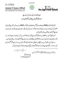 جمعیۃ علماء ہند کی مجلسِ عاملہ کا اجلاس 31 دسمبر 2025 بروز بدھ، شب آٹھ بجے آن لائن منعقد ہوا، جس کی صدارت صدرِ جمعیۃ علماء ہند مولانا محمود اسعد مدنی نے فرمائی۔ اجلاس میں جمعیۃ علماء ہند کے رواں ٹرم کے لیے ناظمِ عمومی کے انتخاب پر غور و خوض کیا گیا۔