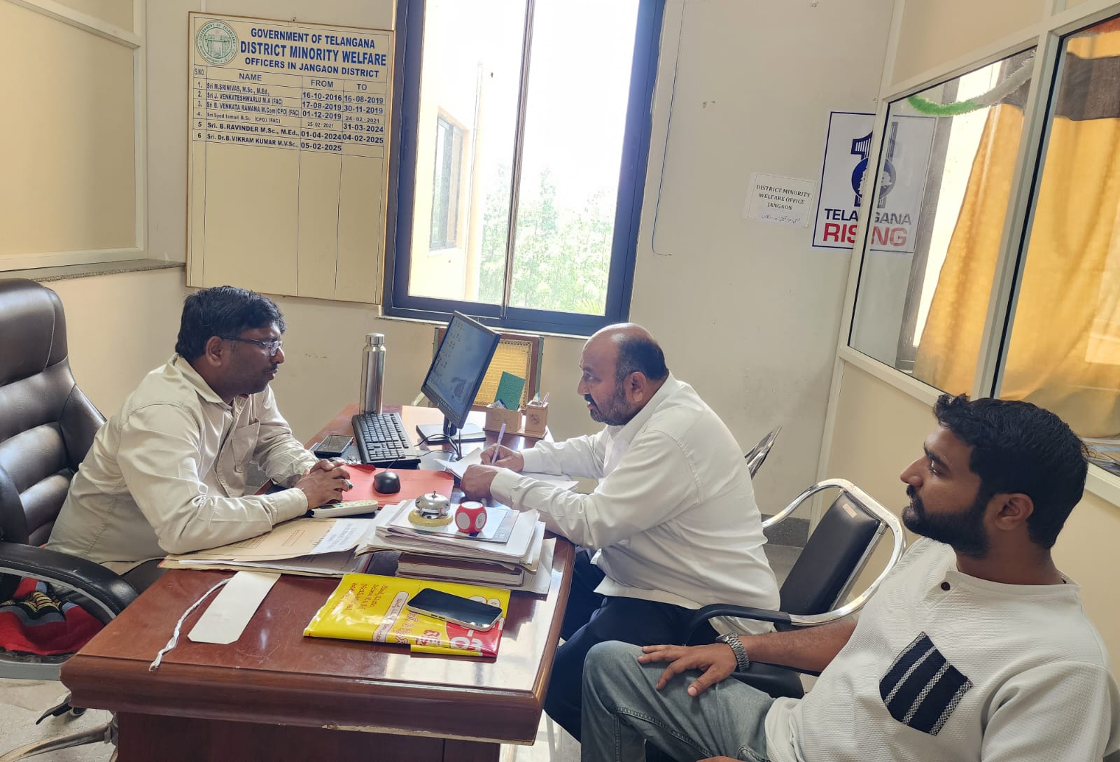 Mohammad Jamal Shareef Advocate met with Jangaon District Minority Welfare Officer Dr. B. Vikram Kumar