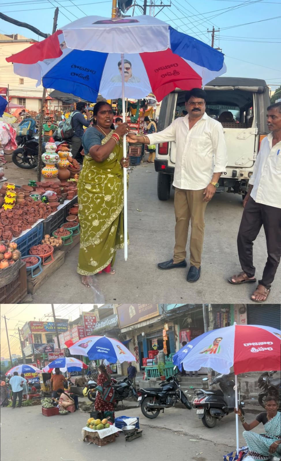 بے سہارا فٹ پاتھ پر کاروبار کرنے والے تاجرین میں گریٹر ورنگل کانگریس کے ورکنگ پریسیڈنٹ راجنالا سری ہری نے بڑی چھتریاں تقسیم کیے.