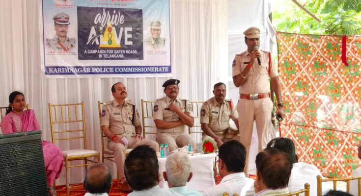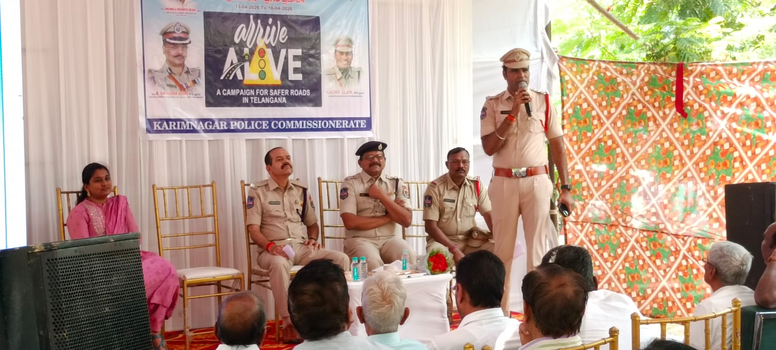 Road safety awareness meeting held in Housing Board Colony, Karimnagar, attended by Police Commissioner Ghaus Alam