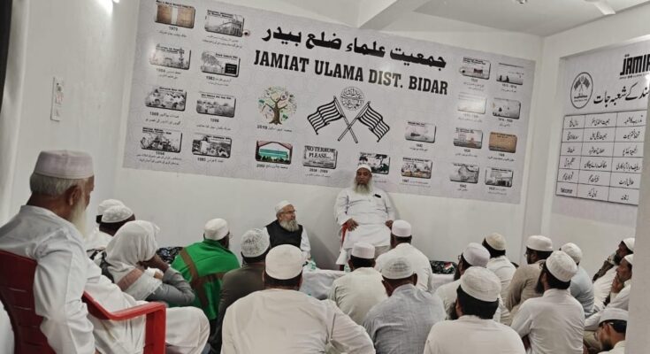 جمعیت علماء بیدر کے زیر اہتمام یس آئی آر special intensive revision کے تعلق سے شعور بیداری کےلئے دفتر جمعیت علماء بیدر میں ایک مذاکرتی اجلاس منعقد کیا گیا جس میں مفتی افتخار احمد قاسمی صدر جمعیت علماء کرناٹک نے تفصیل سے اس پر روشنی ڈالی اور اپنے فکر انگیز خطاب میں فرمایا کہ یہ ملک ہمارے بزرگوں کو ملاتھا ہم نے آٹھ سو سال تک یہاں حکومت کی پھر ہماری نا اہلی کی وجہ سے یہ ملک چھین لیا گیا ا ور انگریز اس پر قابض ہوگئے ۔اللہ کا دستور ھے نعمتوں کے ملنے پر اگر شکر بجا لایں گے تو نعمتوں میں اضافہ ہوگا اور نا شکری کریں گے تو نعمتیں چھین لی بھی جایں گی اور آزمایش میں مبتلا کر دیے جایں گے ہمارے ساتھ بھی یہی ہوا ملک چھین لیا گیا غلامی کی زنجیریں پہنا دی گیں اس کے بعد دو سو سال کی جدو جہد و قربانی سے غلامی سے آزادی ملی اور ہمارا ملک آزاد ہوا ہمارے بزرگوں نے دور اندیشی سے اس ملک کی تقسیم کی مخالفت کی لیکن کچھ نا عاقبت اندیش لوگ اقتدار کی ہوس کےلئے ملک کو دو حصوں میں۔