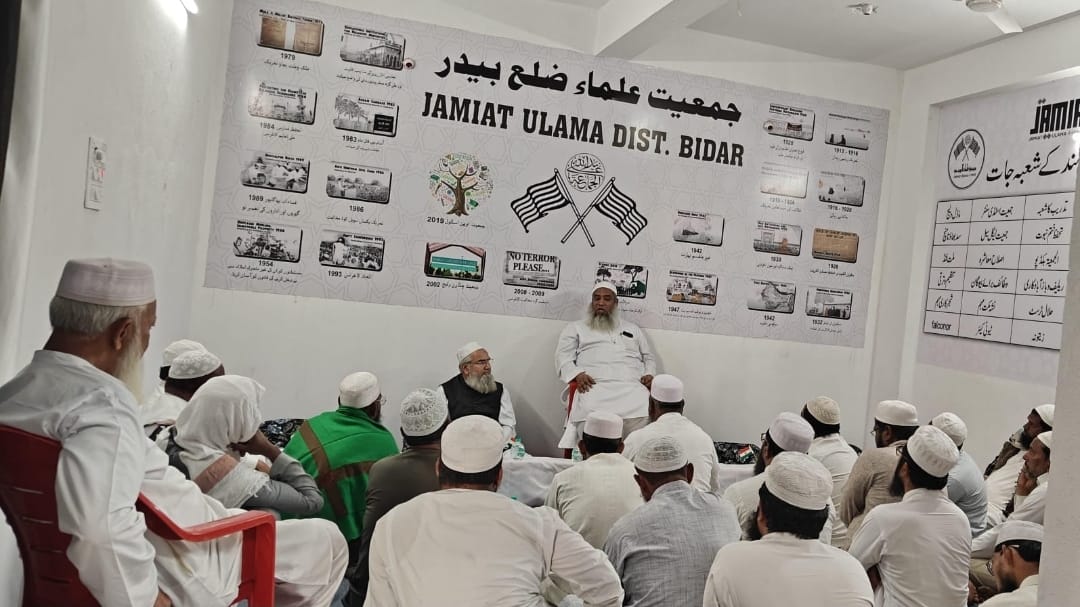 جمعیت علماء بیدر کے زیر اہتمام یس آئی آر special intensive revision کے تعلق سے شعور بیداری کےلئے دفتر جمعیت علماء بیدر میں ایک مذاکرتی اجلاس منعقد کیا گیا جس میں مفتی افتخار احمد قاسمی صدر جمعیت علماء کرناٹک نے تفصیل سے اس پر روشنی ڈالی اور اپنے فکر انگیز خطاب میں فرمایا کہ یہ ملک ہمارے بزرگوں کو ملاتھا ہم نے آٹھ سو سال تک یہاں حکومت کی پھر ہماری نا اہلی کی وجہ سے یہ ملک چھین لیا گیا ا ور انگریز اس پر قابض ہوگئے ۔اللہ کا دستور ھے نعمتوں کے ملنے پر اگر شکر بجا لایں گے تو نعمتوں میں اضافہ ہوگا اور نا شکری کریں گے تو نعمتیں چھین لی بھی جایں گی اور آزمایش میں مبتلا کر دیے جایں گے ہمارے ساتھ بھی یہی ہوا ملک چھین لیا گیا غلامی کی زنجیریں پہنا دی گیں اس کے بعد دو سو سال کی جدو جہد و قربانی سے غلامی سے آزادی ملی اور ہمارا ملک آزاد ہوا ہمارے بزرگوں نے دور اندیشی سے اس ملک کی تقسیم کی مخالفت کی لیکن کچھ نا عاقبت اندیش لوگ اقتدار کی ہوس کےلئے ملک کو دو حصوں میں۔
