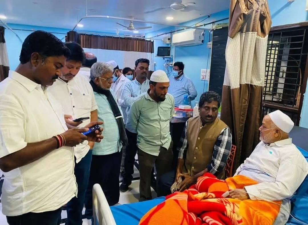 State Hajj Committee Member Syed Mansoor Ahmed Qadri visited, Minister for Local Government and Hajj Rahim Khan met at United Hospital Bidar