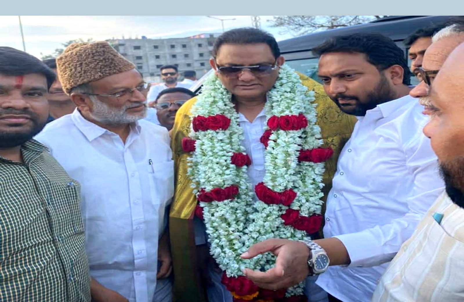 اقلتی وزیرریاست تلنگانہ محمد اظہر الدین کا شاندار استقبال کیا گیا۔
