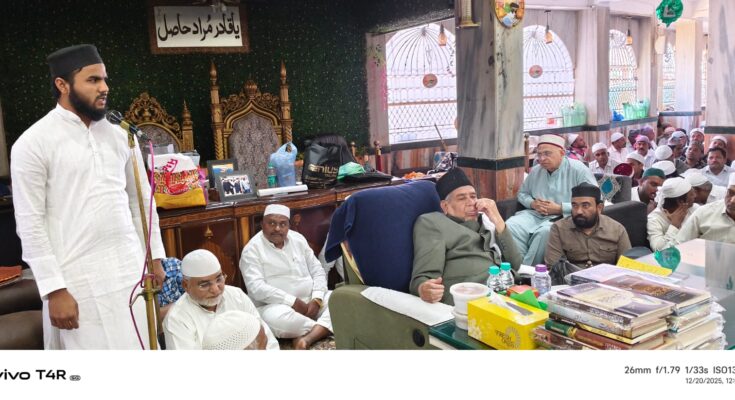 حضرت سیدنا ابو بکر صدیقؓ کی شان محض تاریخ کا موضوع نہیں بلکہ ایمان والوں کے لیے عملی نمونہ ہے۔ غار میں سانپ کا ڈسنا ہو یا ہر موقع پر رسول ﷺ کی تصدیق کی، آپؓ نے ثابت کیا کہ کامل ایمان کیا ہوتا ہے۔ اللہ تعالیٰ ہمیں حضرت صدیقِ اکبرؓ کی محبت، ان کے نقشِ قدم پر چلنے اور ان کی سچی غلامی نصیب فرمائے۔ شاہ خلیفہ محمد ادریس احمد قادری صاحب نے،کہا،کہ حضرتہ سیدہ بی بی فاطمہ الزہراء رضی اللہ تعالیٰ عنہا، خاتونِ جنت، نبی آخرالزماں حضرت محمد مصطفی ﷺ کی سب سے لاڈلی اور پیاری صاحبزادی ہیں۔ آپ کی ذاتِ اقدس قیامت تک آنے والی مسلمان عورتوں کے لیے اسوہ حسنہ ہے۔ آپ عبادت، زہد، صبر، قناعت، حیا، عفت، ایثار اور اطاعتِ رسول ﷺ کا کامل نمونہ تھیں۔کفار کی طرف سے حضور ﷺ کے اوپر اونٹ کی اوجھڑی ڈالنے پراس وقت ننھی فاطمہ رضی اللہ عنہا نے دوڑ کر اپنے والد کا دفاع کیا۔آپ نے ہجرت کے بعد مدینہ میں سادگی، عبادت اور خدمتِ دین کی زندگی گزاری۔ گھر میں فقر تھا مگر دل غنی تھا۔حضرت فاطمہ رضی اللہ عنہا کا نکاح حضرت علی المرتضیٰ رضی اللہ عنہ سے ہوا۔ انہوں نے،مریدین کو تلقین کرتے ہوئے کہا کہ،پانچوں وقت کی نمازوں کی پابندی کے ساتھ اہتمام کریں۔